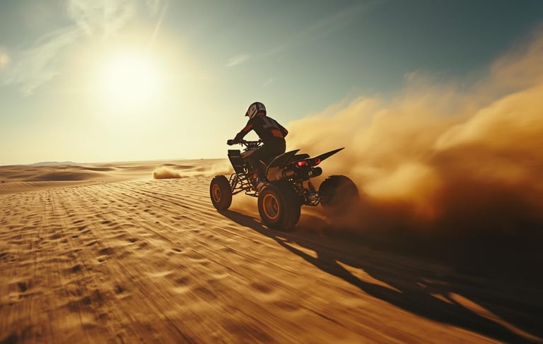 Unleash your adventurous spirit with our Quad Bike Desert Safari, the ultimate off-road experience in the heart of the Arabian Desert. Ride your own powerful quad bike (ATV) across the rolling dunes and feel the rush of adrenaline as you conquer the golden sands under the open sky.
